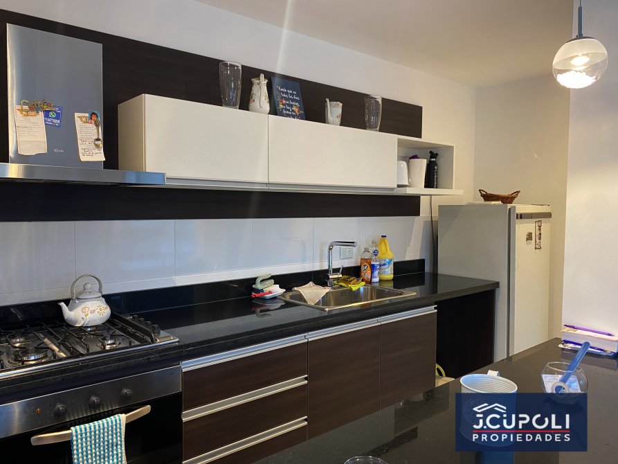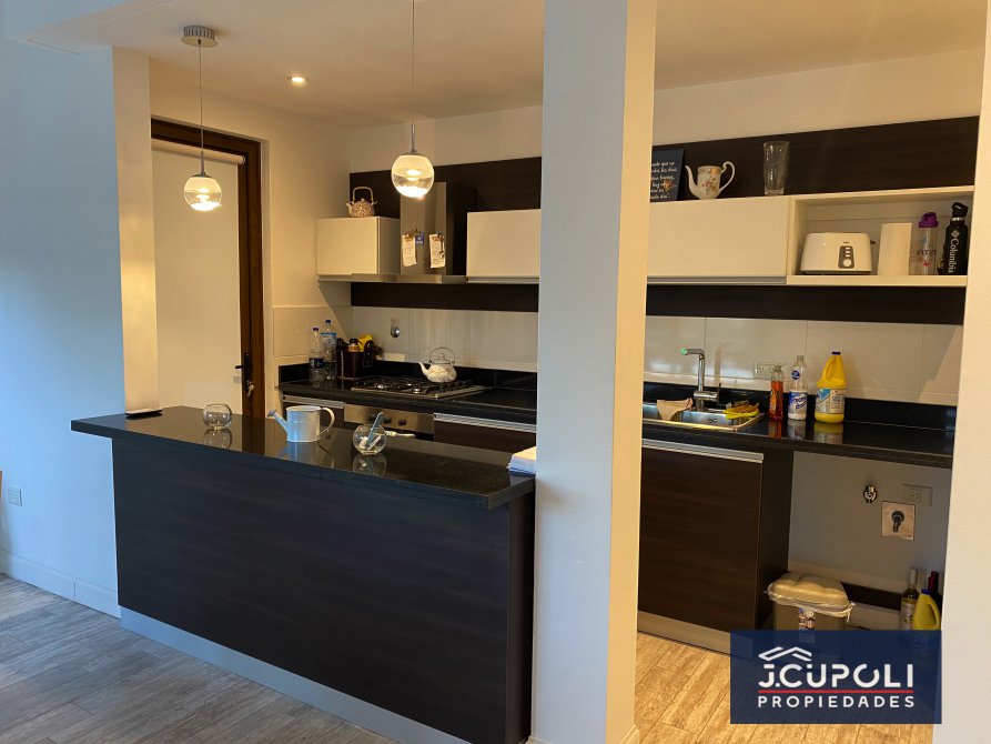 -Cocina semi integrada con barra desayunadora, alacena y bajo mesada.